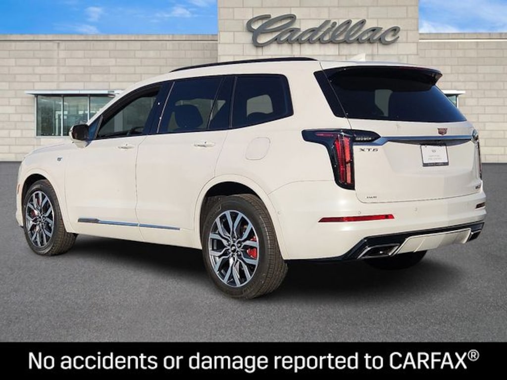 Cadillac Certified, 2-Way Power Driver Lumbar Control Seat Adjuster, 2-Way Power Passenger Lumbar Control Seat Adjuster, 3.49 Axle Ratio, 3rd row seats: split-bench, 4-Wheel Disc Brakes, 6-Passenger Seating, 8 Speakers, 8" Color Driver Information Center Display, ABS brakes, Adaptive Cruise Control, Adaptive suspension, Air Conditioning, Alloy wheels, AM/FM radio: SiriusXM with 360L, Audio memory, Auto High-beam Headlights, Auto tilt-away steering wheel, Auto-dimming door mirrors, Auto-dimming Rear-View mirror, Automatic Emergency Braking, Automatic Parking Assist w/Braking, Automatic Seat Belt Tightening, Automatic Stop/Start w/Disable, Automatic temperature control, Body-Color Door Handles, Bose Premium 8-Speaker Audio System, Brake assist, Bumpers: body-color, Compass, Delay-off headlights, Driver & Front Passenger Heated Seats, Driver Assist Package, Driver door bin, Driver vanity mirror, Dual Driver Information Center Display, Dual front impact airbags, Dual front side impact airbags, Electronic Stability Control, Emergency communication system: OnStar and Cadillac connected services capable, Enhanced Automatic Emergency Braking, Four wheel independent suspension, Front & Rear Park Assist, Front anti-roll bar, Front Bucket Seats, Front Center Armrest, Front dual zone A/C, Front License Plate Bracket, Front reading lights, Fully automatic headlights, Garage door transmitter, HD Surround Vision, Head-Up Display, Heated door mirrors, Heated front seats, Heated steering wheel, Illuminated entry, Inside Rear-View Auto-Dimming Mirror, Knee airbag, Leather Seating Surfaces w/Mini-Perforated Inserts, Leather steering wheel, Low tire pressure warning, Memory seat, Occupant sensing airbag, Outside temperature display, Overhead airbag, Overhead console, Panic alarm, Passenger door bin, Passenger vanity mirror, Performance Suspension, Power door mirrors, Power driver seat, Power Liftgate, Power moonroof: UltraView, Power passenger seat, Power steering, Power windows, Radio data system, Radio: Cadillac User Experience AM/FM Stereo, Rain sensing wipers, Rear air conditioning, Rear anti-roll bar, Rear Camera Mirror, Rear Camera Mirror Washer, Rear Pedestrian Alert, Rear reading lights, Rear seat center armrest, Rear window defroster, Rear window wiper, Remote keyless entry, Reverse Automatic Braking, Roof rack: rails only, Security system, SiriusXM w/360L, Speed control, Speed-sensing steering, Split folding rear seat, Spoiler, Sport Package 1SF, Steering wheel memory, Steering wheel mounted audio controls, Surround Vision Recorder, Tachometer, Technology Package, Teen Driver, Telescoping steering wheel, Tilt steering wheel, Traction control, Trip computer, Turn signal indicator mirrors, Variably intermittent wipers, Voltmeter, Wheels: 20" 12-Spoke Diamond Cut Alloy. Clean CARFAX. CARFAX One-Owner. Crystal White Tricoat 2022 Cadillac XT6 Sport AWD 9-Speed Automatic 3.6L V6 DI VVT