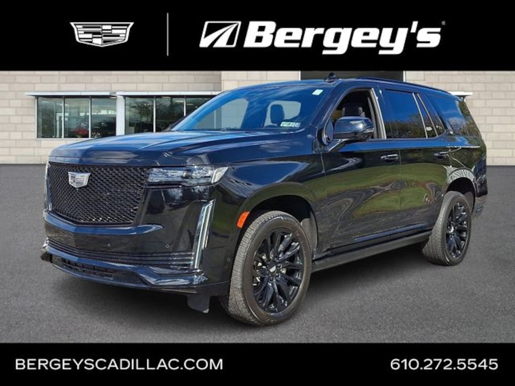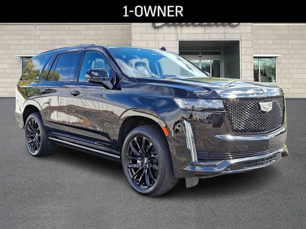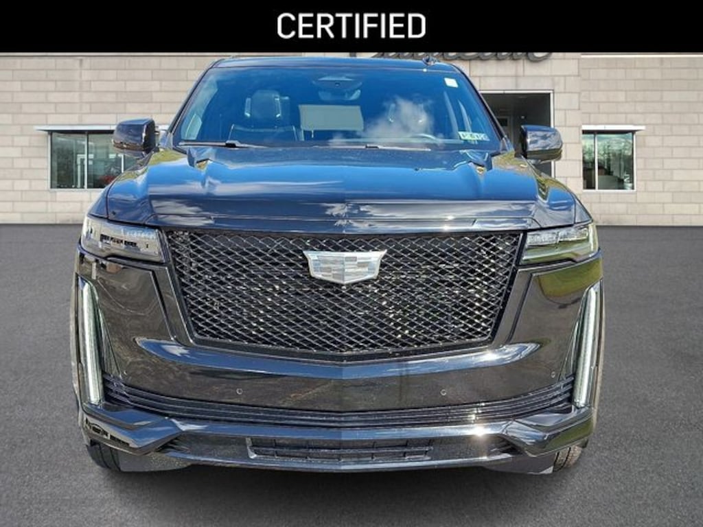 Cadillac Certified Pre-Owned Certified, AWD, Jet Black Leather, Adaptive Cruise Control, Air Ride Adaptive Suspension, AKG Studio Reference 36-Speaker Audio System, Automatic Seat Belt Tightening, Body-Color Door Handles, Door Lock & Latch Shields, Electronic Limited-Slip Differential, Enhanced Automatic Emergency Braking, Enhanced Automatic Parking Assist, Floor Console w/Covered Storage, Front Auxiliary 12-volt Power Outlet, Glass Breakage Sensor, Gloss Black Escalade Nameplate (LPO), Heated & Ventilated Driver & Front Passenger Seats, Hitch Guidance w/Hitch View, Illuminating Front & Rear Sill Plates, Integrated Trailer Brake Controller, Monochrome Cadillac Emblems (LPO), Navigation System, Onyx Package (LPO), Platinum Interior Trim, Power Lumbar Massage Driver Seat, Power Lumbar Massage Front Passenger Seat, Power Panoramic Tilt-Sliding Sunroof, Preferred Equipment Group 1SH, Rear Camera Mirror, Rear Camera Mirror Washer, Rear Cross Traffic Alert, Rear Seat Entertainment System, Reconfigurable Full-Color Head-Up Display, Reverse Automatic Braking, Running Board Assist Steps, Smart Trailer Integration Indicator, Soft Closing Front & Rear Doors, Theft-Deterrent Alarm System, Touring Package, Trailer Side Blind Zone Alert, Vehicle Inclination Sensor, Vehicle Interior Movement Sensor, Wheels: 22" 12-Spoke Gloss Black Alloy (LPO), Wheels: 22" Interim (LPO), 16.9" Diagonal OLED Infotainment Screen, 2-Presets Memory For Driver Seat Adjuster, 2-Speed Active Transfer Case, 3 Years of OnStar & Connected Services Plan, 3.23 Axle Ratio, 3rd row seats: split-bench, 4-Way Power Driver Lumbar Seat Adjuster, 4-Way Power Front Passenger Lumbar Seat Adjuster, 4-Wheel Disc Brakes, 8-Way Power Driver Seat Adjuster, 8-Way Power Front Passenger Seat Adjuster, A/V remote, ABS brakes, Adaptive suspension, Air Conditioning, Alloy wheels, AM/FM radio: SiriusXM with 360L, Apple CarPlay/Android Auto, Audio memory, Auto High-beam Headlights, Auto tilt-away steering wheel, Auto-dimming door mirrors, Auto-dimming Rear-View mirror, Automatic temperature control, Brake assist, Bumpers: body-color, Compass, Delay-off headlights, Door auto-latch, Driver door bin, Driver vanity mirror, Dual front impact airbags, Dual front side impact airbags, Electronic Stability Control, Emergency communication system: OnStar and Cadillac connected services capable, Exterior Parking Camera Rear, Extra Capacity Cooling System, Four wheel independent suspension, Front anti-roll bar, Front Bucket Seats, Front Center Armrest w/Storage, Front dual zone A/C, Front License Plate Bracket, Front reading lights, Full Semi-Aniline Leather Seat Trim, Fully automatic headlights, Garage door transmitter, Genuine wood console insert, Genuine wood dashboard insert, Genuine wood door panel insert, HD Radio, Headphones, Heads-Up Display, Heated door mirrors, Heated Driver & Front Passenger Seats, Heated front seats, Heated rear seats, Heated steering wheel, Heavy-Duty Trailering Package, Illuminated entry, Leather steering wheel, Low tire pressure warning, Magnetic Ride Control Suspension, Memory seat, Not Equipped w/2nd Row Express-Up Window Control, Occupant sensing airbag, Outside temperature display, Overhead airbag, Overhead console, Panic alarm, Passenger door bin, Passenger vanity mirror, Power door mirrors, Power driver seat, Power Liftgate, Power moonroof, Power passenger seat, Power steering, Power windows, Power-Retractable Assist Steps, Radio data system, Radio: AM/F