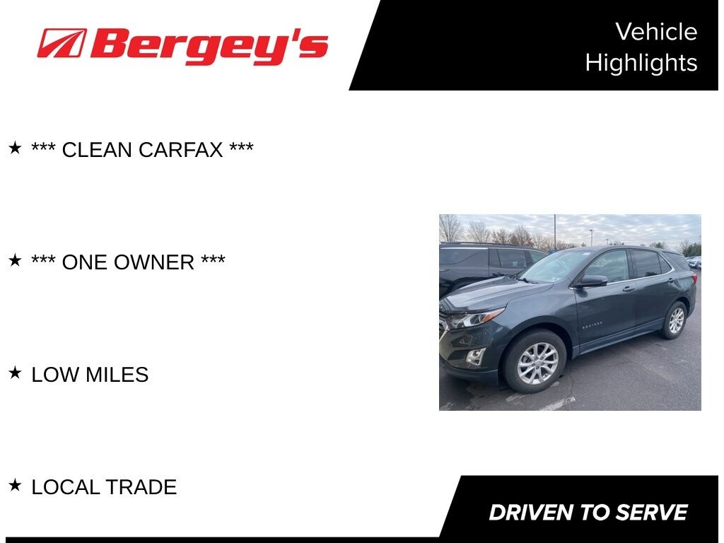 Discover comfort, capability, and reliability in the 2019 Chevrolet Equinox LT, now available at Bergeys Chevrolet in Colmar, PAa top destination for SUV shoppers comparing options in Doylestown, Sellersville, and Quakertown. This versatile Equinox LT offers a smooth and fuel-efficient ride, advanced safety features, spacious seating, and smart tech designed to make every drive easier and more enjoyable. Perfect for families, commuters, and weekend travelers, this well-maintained 2019 Equinox LT stands out as a dependable and stylish compact SUV. Visit Bergeys Chevrolet in Colmar, PA today and see why drivers from Doylestown, Sellersville, and Quakertown choose us for unbeatable value and quality pre-owned vehicles!
