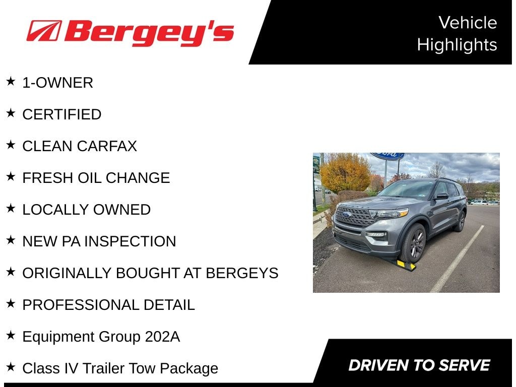 There is no reason to have to sacrifice capability or responsive handling when you drive this Ultra-Low Mileage, Certified Explorer XLT Sport 4WD with Navigation. This One Owner SUV was sold here new at Bergeys Ford and has a clean CarFax. A responsive 2.3L EcoBoost engine delivers 300 HP and 310 lb-ft of torque. Enhanced safety engineering includes the Ford Co-Pilot360 Assist+ System, BLIS blind spot monitoring, Lane-Keeping Assistance and LED Signature Lighting that delivers a 5 star Overall Safety rating.
