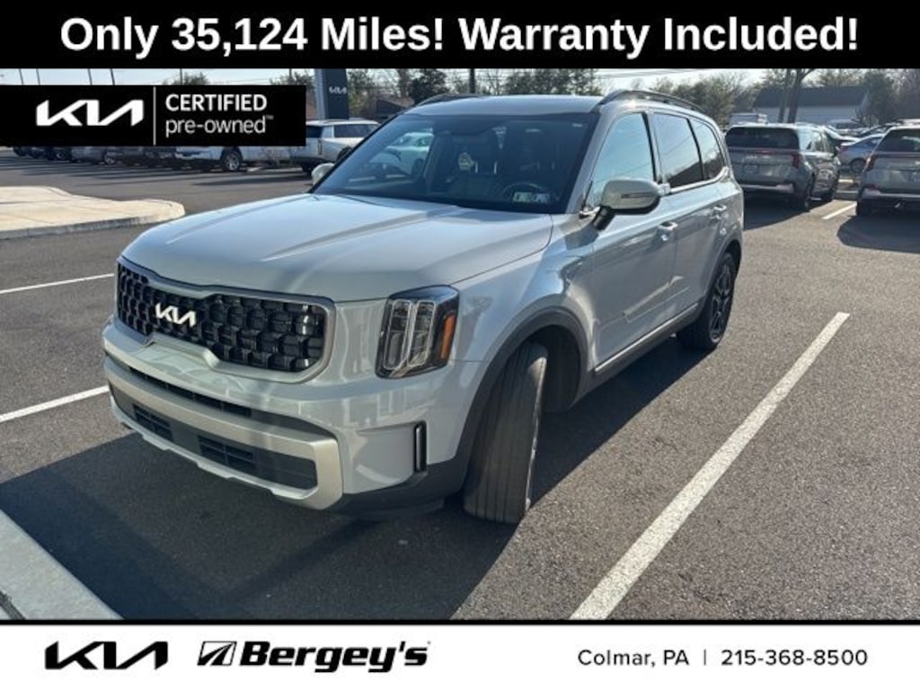 As a Kia Certified Pre-Owned vehicle, this Telluride EX X-Line has undergone a rigorous 165-point inspection and is backed by a comprehensive warranty package, including a 12-month/12,000-mile "Platinum Coverage" limited warranty and a 120-month/100,000-mile powertrain limited warranty from the original in-service date. You can also enjoy the added benefits of roadside assistance, rental car reimbursement, and a 3-month SiriusXM trial subscription.