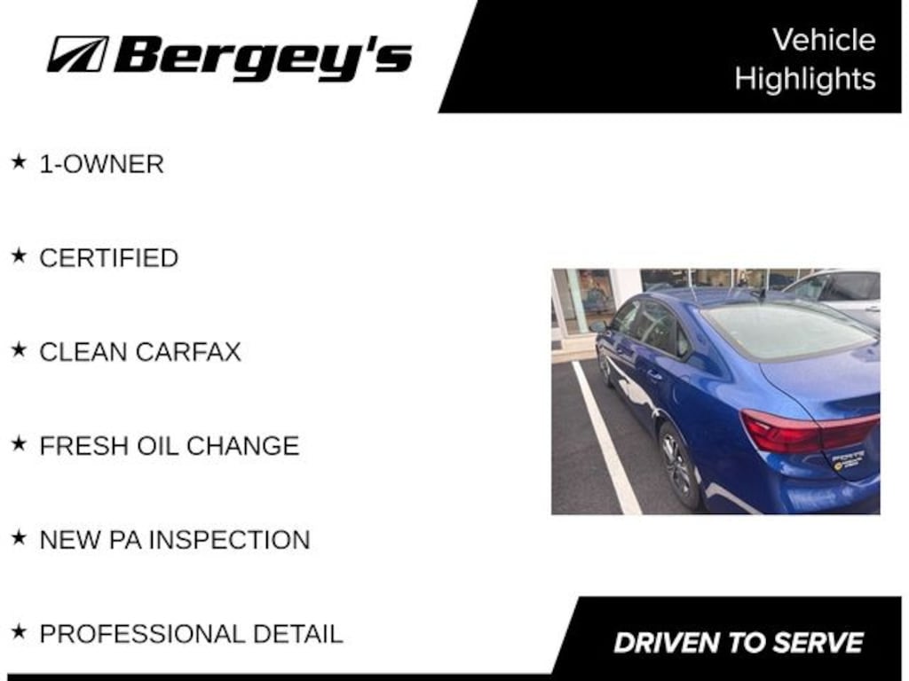 Certified. Deep Sea Blue 2024 Kia Forte LXS FWD CVT 2.0L I4 MPI 1-OWNER, CERTIFIED, CLEAN CARFAX, FRESH OIL CHANGE, NEW PA INSPECTION, PROFESSIONAL DETAIL.