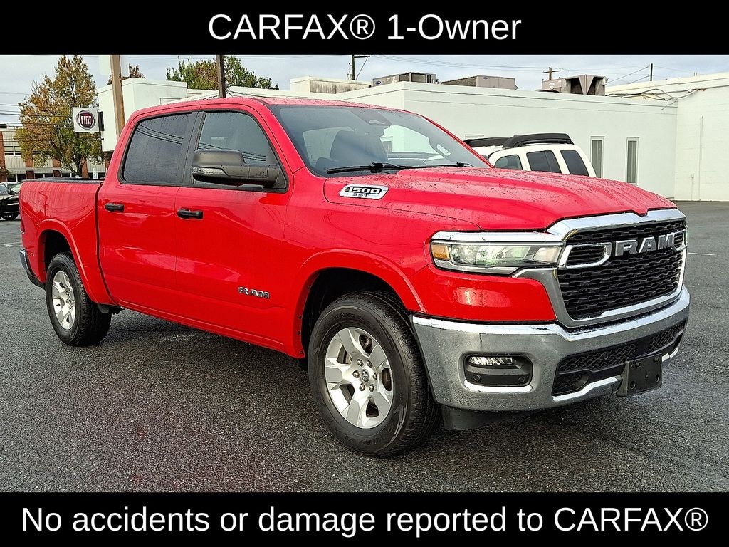 Certified. Flame Red Clearcoat 4D Crew Cab CARFAX One-Owner. 2025 Ram 19/24 City/Highway MPG 1500 Big Horn/Lone Star 4WD 8-Speed Automatic 3.0L I6 115V Auxiliary Power Outlet, 115V Auxiliary Rear Power Outlet, 12" Touchscreen Display, 2nd Row In Floor Storage Bins, 400W Inverter, 4G LTE Wi-Fi Hot Spot, 9 Amplified Speakers w/Subwoofer, Air Conditioning ATC w/Dual Zone Control, Apple CarPlay, Auto Power-Folding Mirrors, Auto-Dimming Exterior Driver Mirror, Auto-Dimming Rear-View Mirror, Big Horn Level 2 Equipment Group, Black Exterior Mirrors, Black Premium Power Mirrors, Cluster 7.0" TFT Color Display, Configurable Drive Mode, Connected Travel & Traffic Services, Connectivity - US/Canada, Convex Wide-Angle Exterior Mirror Insert, Exterior Mirrors Courtesy Lamps, Exterior Mirrors w/Heating Element, Exterior Mirrors w/Supplemental Signals, Glove Box Lamp, Google Android Auto, GPS Antenna Input, GPS Navigation, HD Radio, Heated Front Seats, Heated Steering Wheel, Integrated Voice Command w/Bluetooth, Leather Wrapped Steering Wheel, LED Dome Lamp w/On/Off Switch, LED Footwell Lighting, Media Hub w/2 Charge Only USBs, Overhead LED Lamps, Power 2-Way Driver Lumbar Adjust, Power Adjust 8-Way Driver Seat, Power Adjustable Pedals, Premium Overhead Console, Quick Order Package 21Z Big Horn, Radio: Uconnect 5 Nav w/12.0" Display, Rear Power Sliding Window, Rear Window Defroster, Remote Tailgate Release, Security Alarm, SiriusXM w/360L, Steering Wheel Mounted Audio Controls, Sun Visors w/Illuminated Vanity Mirrors, Universal Garage Door Opener, USB Host Flip, Wheels: 18" x 8" Cast-Aluminum Painted.
