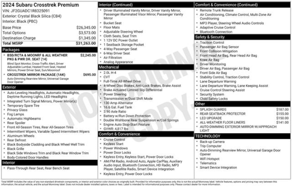 Crystal Black Silica 2024 Subaru Crosstrek Premium AWD Lineartronic CVT 2.0L 4-Cylinder DOHC 16V