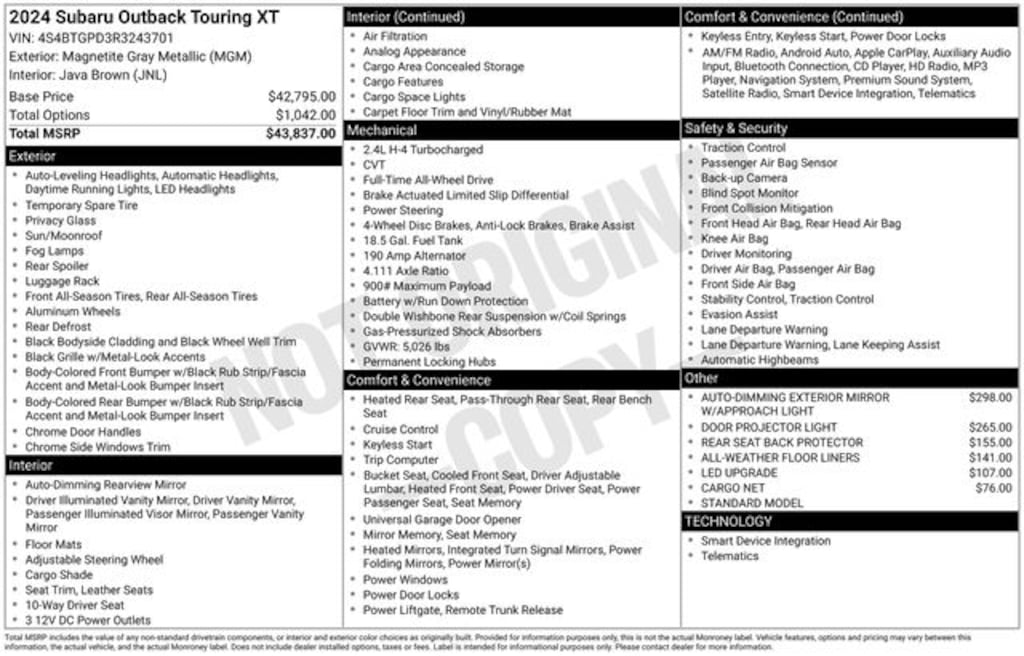 Certified Pre Owned 2024 SubaruOutback Touring XT