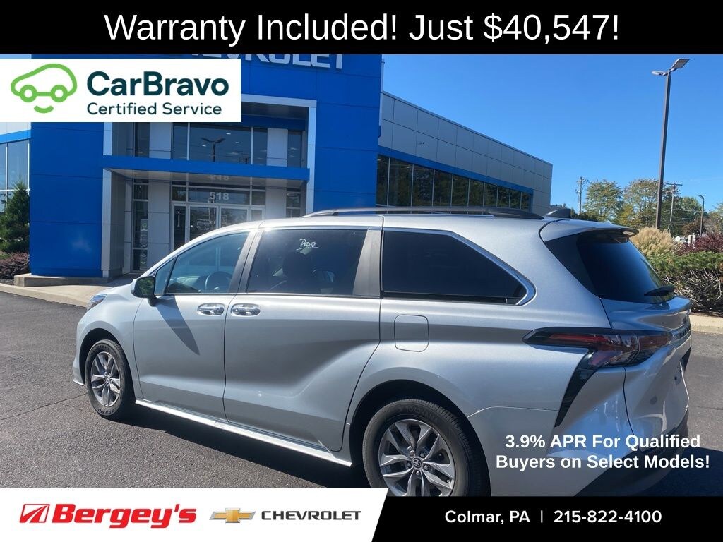 Get ready to hit the roads around Colmar, Doylestown and Sellersville in style with the 2024 Toyota Sienna XLE, available now at Bergeys Chevrolet in Colmar, PA! This smart family friendly minivan combines a hybrid powertrain yielding up to 36MPG combined with seating for seven and up to 3,500lbs towing capacity when properly equipped. Inside, you'll find premium features like heated front seats, a 9inch infotainment touchscreen, Toyota Safety Sense suite of driver assists, and the flexibility of third row seating plus big cargo space behind it.