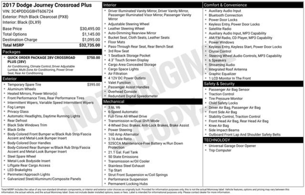 AWD. Pitch Black Clearcoat 2017 Dodge Journey Crossroad AWD 6-Speed Automatic 3.6L V6 24V VVT