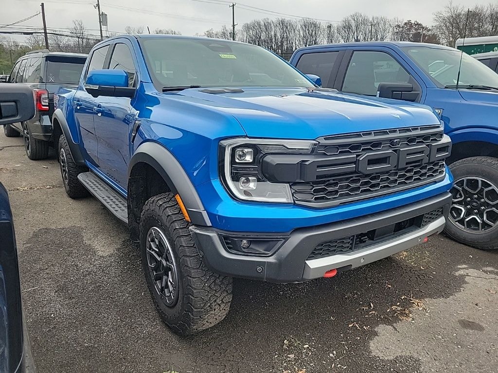 However, monstrous power, cutting-edge suspension, and solid-metal armor mean very little if the truck cant make it to where the power and protection are needed. So, the 2024 Ford Ranger Raptor combines its 4×4 power with meaty 33-inch all-terrain tires to get you there without breaking a sweat. Extra-large fender flares help catch the rocks, debris, and dirt they kick up. The aforementioned locking differentials get better still, as the Ranger Raptor uses Ford Trail Control, off-road digital-gauge-cluster readouts, and an electronic two-speed transfer to rise above the rest.