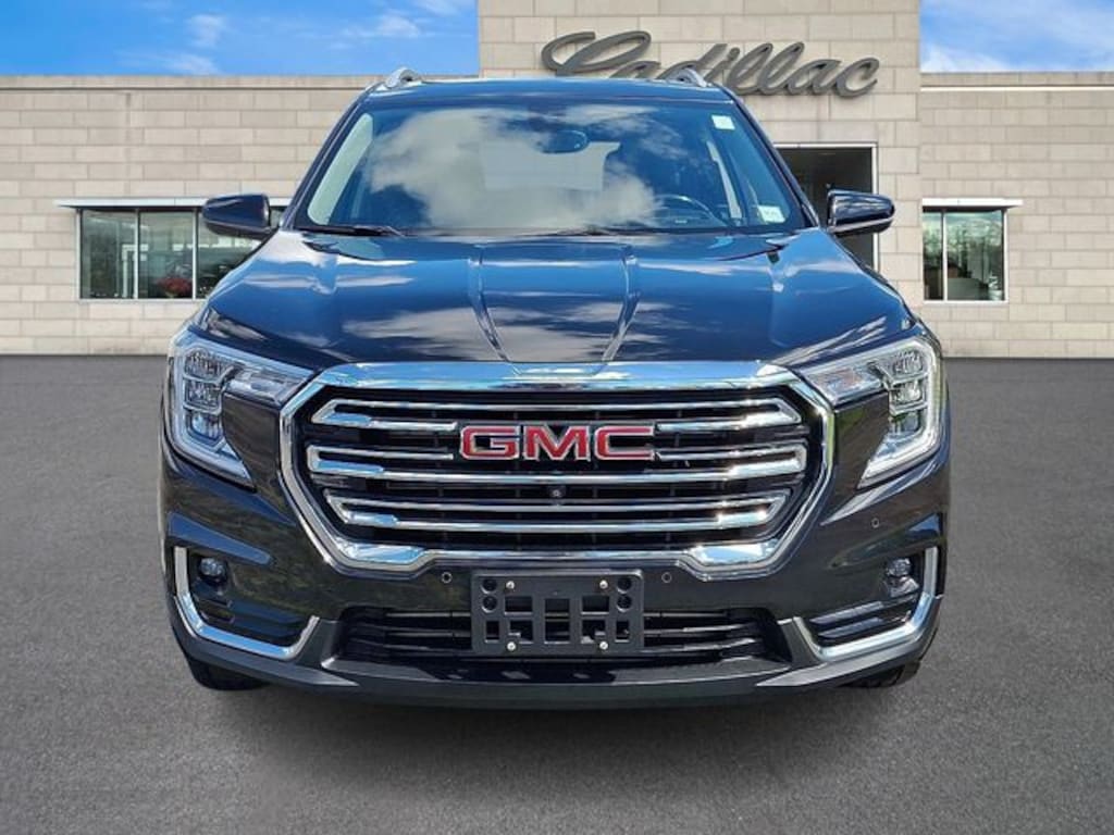 AWD, 2 USB Data Ports, 2 USB Data Ports w/SD Card Reader, 3 Years of OnStar & Connected Services Plan, 3.47 Axle Ratio, 4-Wheel Disc Brakes, 6 Speakers, 6-Speaker Audio System Feature, 6-Way Power Front Passenger Seat, 8-Way Power Driver Seat Adjuster, ABS brakes, Adaptive Cruise Control, Air Conditioning, Alloy wheels, AM/FM radio: SiriusXM, Auto High-beam Headlights, Auto-dimming Rear-View mirror, Automatic temperature control, Bluetooth® For Phone, Brake assist, Bumpers: body-color, Compass, Delay-off headlights, Driver & Front Passenger Heated Seats, Driver door bin, Driver vanity mirror, Dual front impact airbags, Dual front side impact airbags, Electronic Stability Control, Emergency communication system: OnStar Guidance, Four wheel independent suspension, Front & Rear Park Assist, Front anti-roll bar, Front Bucket Seats, Front Center Armrest, Front dual zone A/C, Front fog lights, Front Passenger 2-Way Power Lumbar, Front reading lights, Fully automatic headlights, Garage door transmitter, GMC Pro Safety Plus, HD Surround Vision, Head-Up Display, Heated door mirrors, Heated front seats, Heated steering wheel, Illuminated entry, Infotainment Package II, Lane Change Alert w/Side Blind Zone Alert, Lane Departure Warning System, License Plate Front Mounting Package, Low tire pressure warning, Memory seat, Not Equipped w/Lane Change & Rear Cross Traffic Alerts, Occupant sensing airbag, Outside temperature display, Overhead airbag, Overhead console, Panic alarm, Passenger door bin, Passenger vanity mirror, Perforated Leather-Appointed Seat Trim, Power door mirrors, Power Driver Lumbar Control, Power driver seat, Power Liftgate, Power passenger seat, Power steering, Power windows, Preferred Equipment Group 4SA, Premium 7-Speaker Bose Sound System w/Amplifier, Radio data system, Radio: GMC Infotainment Audio System w/8" Display, Radio: GMC Infotainment Audio System w/Navigation, Rear anti-roll bar, Rear Cross-Traffic Alert, Rear Park Assist, Rear seat center armrest, Rear window defroster, Rear window wiper, Remote keyless entry, Roof rack: rails only, Safety Alert Seat, Security system, SiriusXM Radio, Skyscape Power Sunroof w/Power Sunscreen, Speed control, Speed-sensing steering, Split folding rear seat, Spoiler, Steering wheel mounted audio controls, Tachometer, Tech Package, Telescoping steering wheel, Tilt steering wheel, Traction control, Trip computer, Turn signal indicator mirrors, Variably intermittent wipers, Wheels: 18" x 7" Silver Painted Aluminum, Wireless Apple CarPlay/Wireless Android Auto, AWD. Clean CARFAX. CARFAX One-Owner. Ebony Twilight Metallic 2022 GMC Terrain SLT AWD 9-Speed Automatic 1.5L DOHC