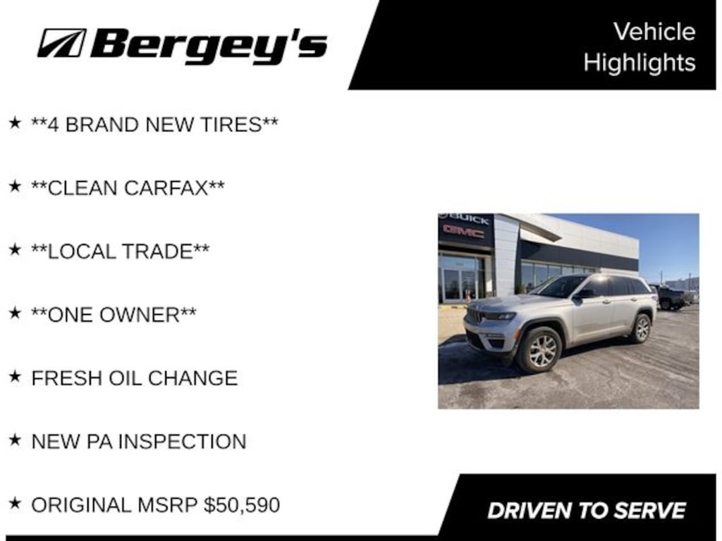 With an original MSRP of $50,590, this 2022 Jeep Grand Cherokee Limited represents an exceptional value at just $28,495. Don't miss your chance to own this well-equipped and meticulously maintained SUV. Schedule a test drive today and experience the ultimate in Jeep capability and refinement.