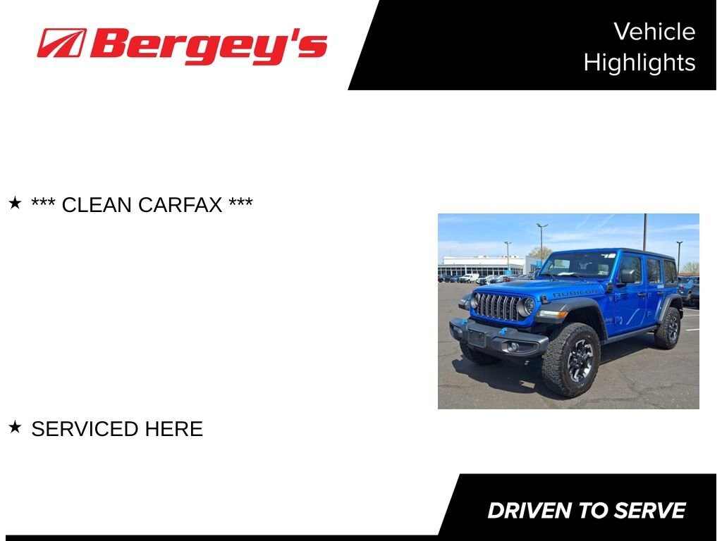 This 2024 Jeep Wrangler Rubicon 4xe is a true testament to Jeep's legendary engineering and design. With its exceptional capabilities, cutting-edge technology, and uncompromising style, it's the perfect companion for your next adventure. Experience the thrill of the open road and discover the true meaning of freedom behind the wheel of this remarkable vehicle.
