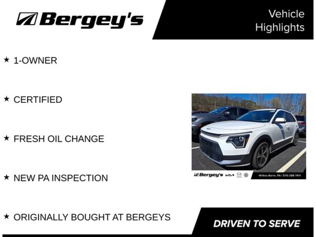 Snow White Pearl 2023 Kia Niro EX FWD 6-Speed Automatic 1.6L I4 DGI Hybrid DOHC 16V LEV3-SULEV30 1-OWNER, CERTIFIED, FRESH OIL CHANGE, NEW PA INSPECTION, ORIGINALLY BOUGHT AT BERGEYS, 1.6L I4 DGI Hybrid DOHC 16V LEV3-SULEV30.