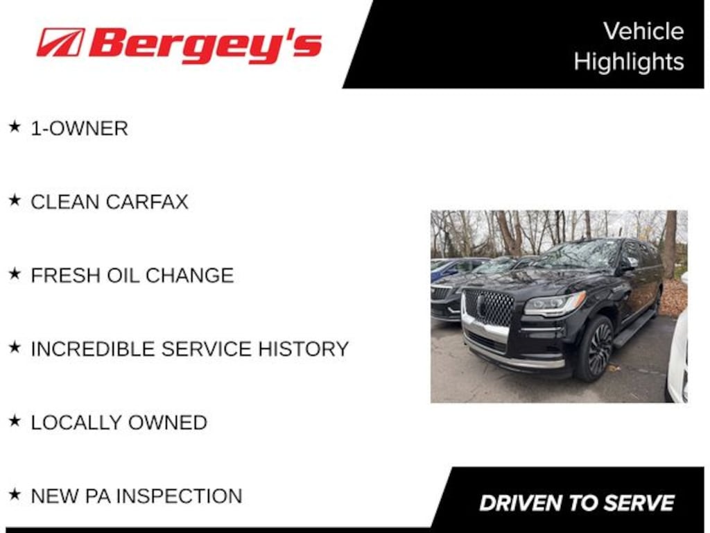 NEW ARRIVAL. 1-OWNER, CLEAN CARFAX, FRESH OIL CHANGE, INCREDIBLE SERVICE HISTORY, LOCALLY OWNED, NEW PA INSPECTION, Equipment Group 800A Black Label, Navigation system: Connected Navigation (1-year trial).Equipment Group 800A Black Label, Navigation system: Connected Navigation (1-year trial), 28 Speakers, 2nd Row Htd/Vent Enhcd Massage Seats w/out Console, 3.73 Axle Ratio, 3rd row seats: split-bench, 4-Wheel Disc Brakes, ABS brakes, Adaptive suspension, Adjustable pedals, Air Conditioning, Alloy wheels, AM/FM radio: SiriusXM with 360L, Apple CarPlay/Android Auto, Audio memory, Auto High-beam Headlights, Auto Start-Stop Technology, Auto tilt-away steering wheel, Auto-dimming door mirrors, Auto-dimming Rear-View mirror, Auto-leveling suspension, Automatic temperature control, Bodyside moldings, Brake assist, Bumpers: body-color, Compass, Delay-off headlights, Driver door bin, Driver vanity mirror, Driver's Seat Mounted Armrest, Dual front impact airbags, Dual front side impact airbags, Electronic Stability Control, Emergency communication system: 911 Assist, Exterior Parking Camera Rear, Floor Carpet/Mats - Espresso w/Dinamica Suede, Four wheel independent suspension, Front anti-roll bar, Front Bucket Seats, Front dual zone A/C, Front fog lights, Front reading lights, Fully automatic headlights, Garage door transmitter, Genuine wood console insert, Genuine wood door panel insert, Head restraints memory, Headliner - Alpine Dinamica Suede, Heads-Up Display, Heated door mirrors, Heated front seats, Heated rear seats, Heated steering wheel, HVAC memory, Illuminated entry, Lane Departure Warning System, Leather steering wheel, Leather-Wrapped Interior - Alpine w/Black Stitch, Low tire pressure warning, Memory seat, Occupant sensing airbag, Outside temperature display, Overhead airbag, Overhead console, Panic alarm, Passenger door bin, Passenger seat mounted armrest, Passenger vanity mirror, Pedal memory, Power adjustable front head restraints, Power adjustable rear head restraints, Power door mirrors, Power driver seat, Power Liftgate, Power moonroof: Panoramic Vista Roof, Power passenger seat, Power steering, Power windows, Radio data system, Radio: Revel Ultima 3D Audio System w/28 Speakers, Rain sensing wipers, Rear air conditioning, Rear anti-roll bar, Rear audio controls, Rear reading lights, Rear seat center armrest, Rear window defroster, Rear window wiper, Reclining 3rd row seat, Remote keyless entry, Security system, Silverwood Recon Appliques, SiriusXM w/360L, Speed control, Speed-sensing steering, Speed-Sensitive Wipers, Split folding rear seat, Spoiler, Steering wheel memory, Steering wheel mounted audio controls, SYNC 4 Communications & Entertainment System, Tachometer, Telescoping steering wheel, Tilt steering wheel, Traction control, Trip computer, Turn signal indicator mirrors, Variably intermittent wipers, Venetian Lthr Auto Htd/Ventilatd Capt's Chairs (B), Ventilated front seats, Ventilated rear seats, Voice-Activated Touchscreen Navigation System, Wheels: 22" 14-Spoke Bright Machined Aluminum, Clean CARFAX. CARFAX One-Owner. Infinite Black Metallic Clearcoat 2024 Lincoln Navigator L L Black Label 4WD 10-Speed Automatic V6