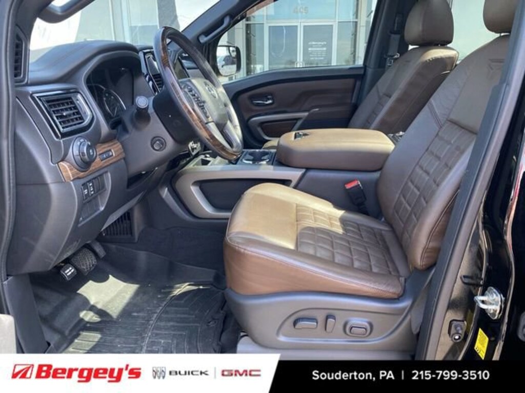 Experience the pinnacle of power and luxury with this exceptional 2021 Nissan Titan Platinum Reserve. This one-owner, meticulously maintained vehicle is a true testament to Nissan's commitment to quality and performance.- 1-OWNER- INCREDIBLE SERVICE HISTORY- ORIGINAL MSRP $64,980- PLATINUM ILLUMINATED KICK PLATE- MOONROOF PACKAGE- PLATINUM UTILITY PACKAGE- LOGO LIGHT & RADIANT GRILLE EMBLEM- PLATINUM RESERVE MUD FLAPSBoasting a commanding 5.6L V8 DOHC 32V engine that delivers an impressive 400 horsepower, this Titan Platinum Reserve is engineered to conquer any terrain with its 4-wheel drive capabilities. Couple that with the smooth-shifting 9-speed automatic transmission, and you have a vehicle that seamlessly blends power, efficiency, and control.Step inside this stunning Titan and be enveloped in the luxurious Platinum Reserve experience. Premium leather-appointed seating with heated and ventilated front captain's chairs ensure unparalleled comfort, while the Dual Panel Panoramic Moonroof and Platinum Illuminated Kick Plate add an extra touch of refinement. The NissanConnect infotainment system, complete with navigation and Apple CarPlay/Android Auto integration, keeps you connected and entertained on every journey.Safety is paramount in the Titan Platinum Reserve, with features like Blind Spot Warning, Rear Parking Sensors, and Nissan's advanced safety suite providing peace of mind. The TITAN Box and Rear Utility Bed Step further enhance the utility and versatility of this impressive full-size pickup.With a city fuel economy of 15 MPG and an impressive 21 MPG on the highway, the Titan Platinum Reserve strikes the perfect balance between power and efficiency. This meticulously maintained, one-owner vehicle is a rare find, and it's waiting for you to experience the ultimate in Nissan truck luxury.Don't miss your chance to own this exceptional 2021 Nissan Titan Platinum Reserve. Schedule a test drive today and discover the unparalleled performance, comfort, and style that this remarkable vehicle has to offer.