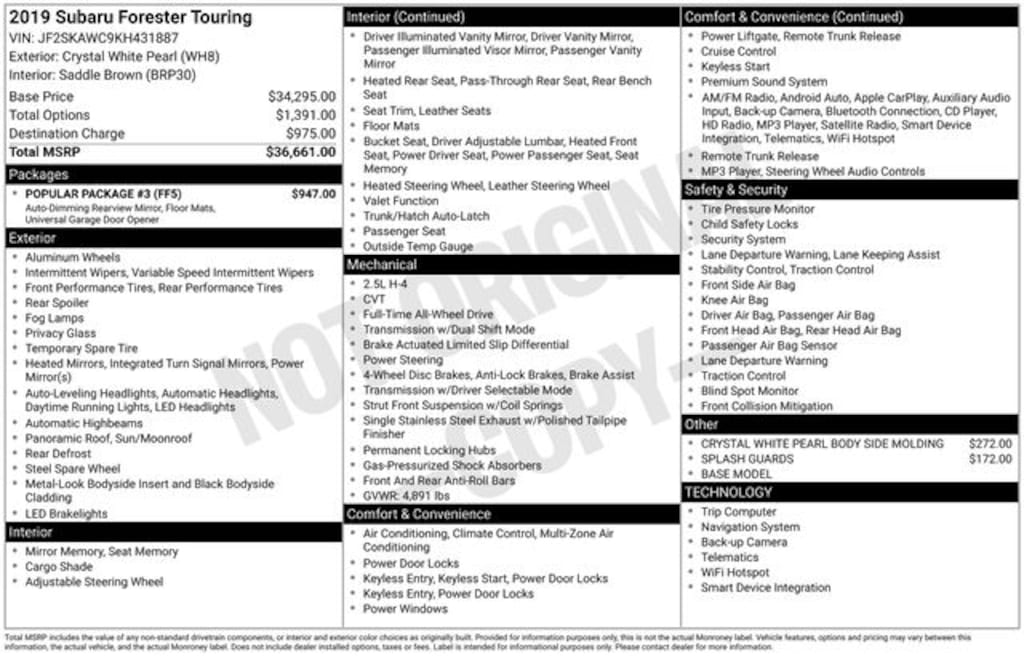 - Radio: Subaru Starlink 8.0" Multimedia Nav System