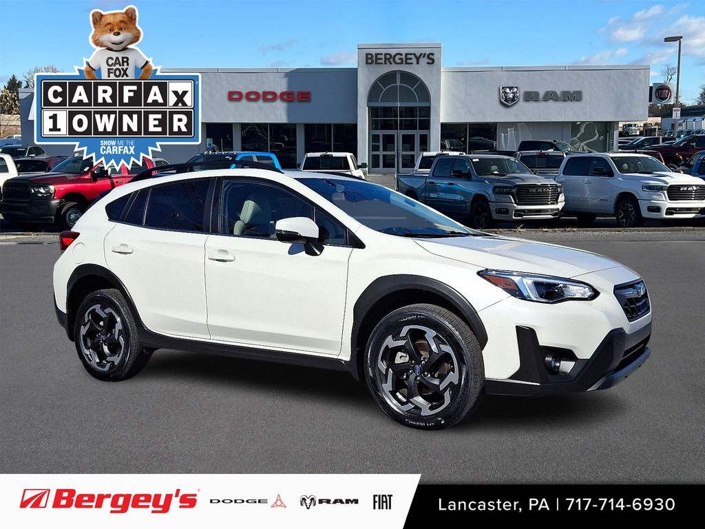 Crystal White Pearl 4D Sport Utility CARFAX One-Owner. 2022 Subaru 27/34 City/Highway MPG Crosstrek Limited AWD Lineartronic CVT 2.5L 4-Cylinder DOHC 16V All-Weather Floor Liners, Auto-Dimming Exterior Mirror w/Approach Light, Auto-Dimming Mirror w/Compass & HomeLink, Front Bucket Seats, Front Center Armrest, harman/kardon Speaker System, Heated door mirrors, Heated Front Bucket Seats, Heated front seats, Leather-Trimmed Upholstery, Moonroof Package 2, Popular Package #4A, Power door mirrors, Power driver seat, Power Moonroof, Radio: Subaru STARLINK 8.0" Multimedia Nav System, Rear Bumper Cover, Rear Seatback Protector, Remote keyless entry, Splash Guards, Split folding rear seat, Spoiler, STARLINK/Apple CarPlay/Android Auto, Steering wheel mounted audio controls, Subaru STARLINK Smartphone Integration, Wheels: 18" x 7.0J Alloy Black w/Machine Finish.