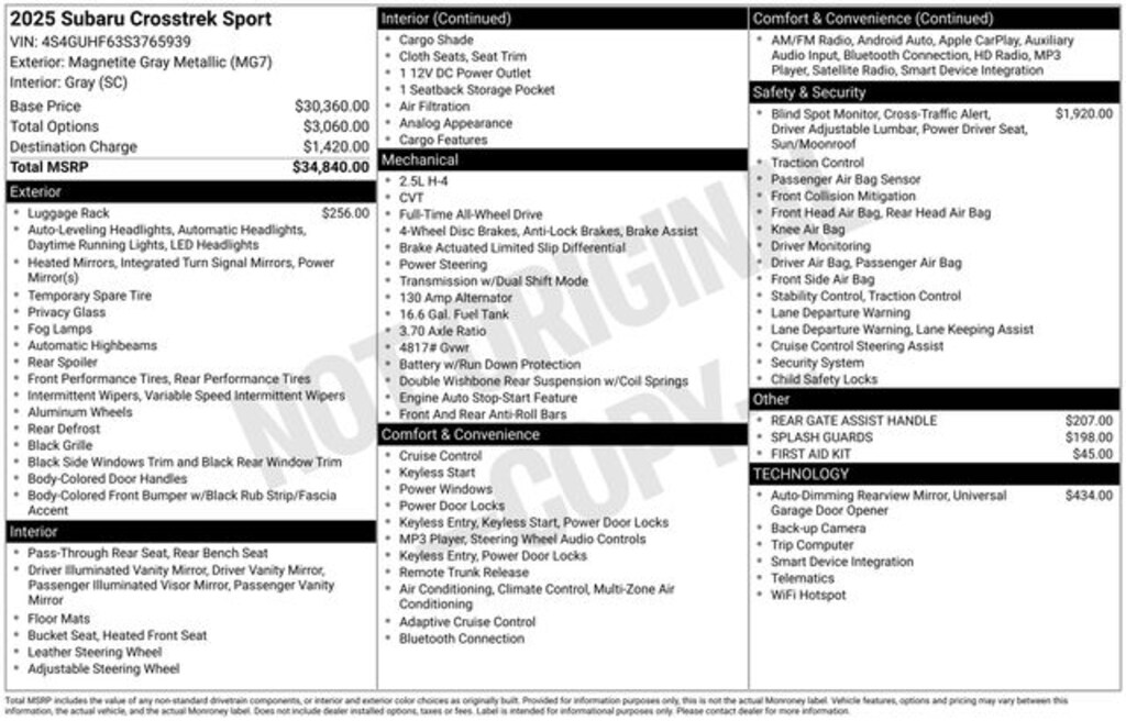 Magnetite Gray Metallic 2025 Subaru Crosstrek Sport AWD Lineartronic CVT 2.5L 4-Cylinder DOHC 16V