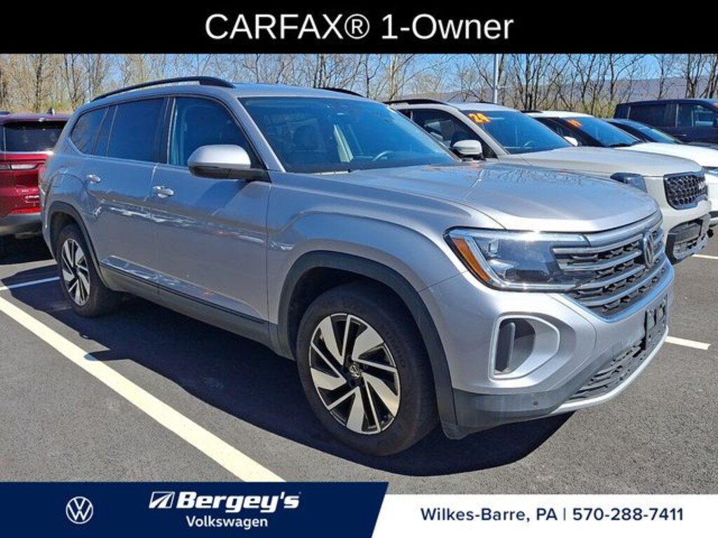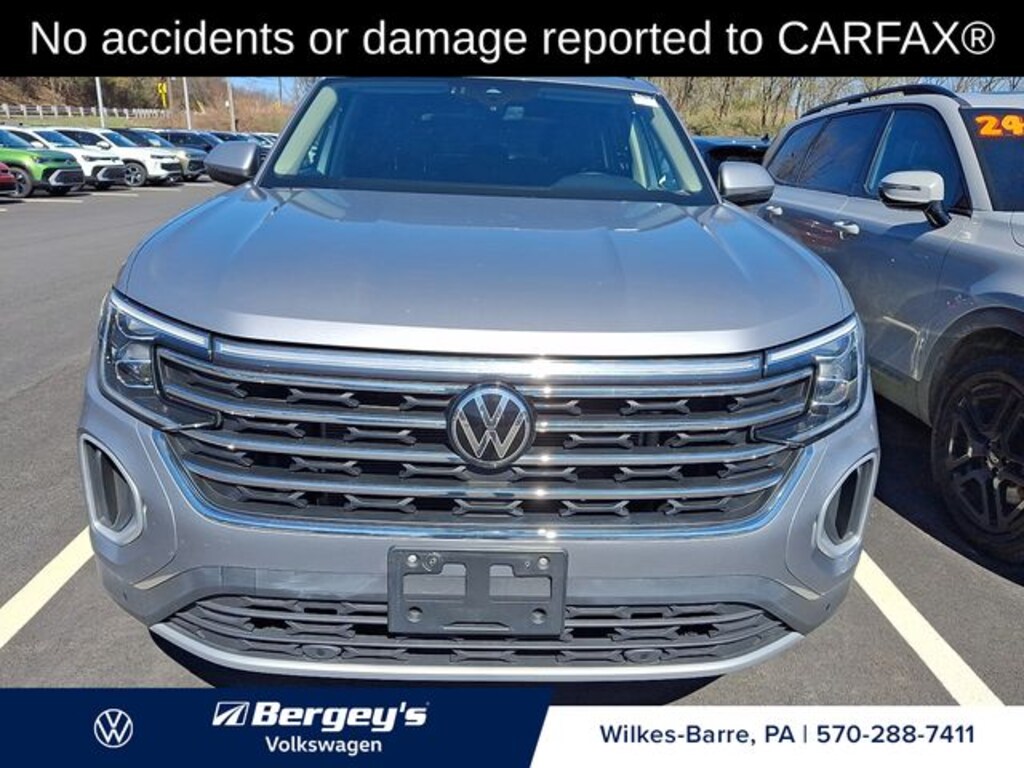 Certified. Silver Mist Metallic 2025 Volkswagen Atlas 2.0T SE w/Technology AWD 8-Speed Automatic 2.0L TSI