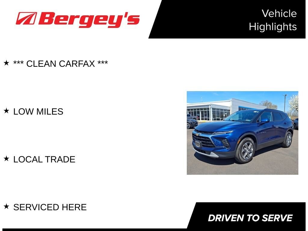 Discover the perfect blend of style, performance, and convenience in the 2023 Chevrolet Blazer LT. This exceptional SUV is more than just a capable off-road companion; it's a true expression of your dynamic lifestyle.Boasting a stunning Blue exterior, the Blazer LT commands attention with its bold and refined design. Under the hood, you'll find a powerful 2.0L Turbocharged engine paired with a smooth-shifting 9-Speed Automatic transmission, delivering an impressive 22 city and 27 highway MPG. The confidence-inspiring All-Wheel Drive system ensures you'll conquer any terrain with ease.- CLEAN CARFAX- LOCAL TRADE- LOW MILES- SERVICED HERE- LICENSE PLATE FRONT MOUNTING PACKAGE- DRIVER CONFIDENCE PACKAGE- CONVENIENCE PACKAGEThe Blazer LT is more than just a capable SUV; it's a true expression of your refined taste. The Convenience Package elevates your driving experience with features like Adaptive Cruise Control, Wireless Charging, and a Power Programmable Liftgate. The Driver Confidence Package provides added peace of mind with Lane Change Alert, Rear Park Assist, and Rear Cross Traffic Alert.Step inside the Blazer LT and be captivated by the premium Chevrolet Infotainment 3 Plus system, complete with SiriusXM, Apple CarPlay, and Android Auto integration. The 6-speaker audio system delivers a rich, immersive listening experience, while the Dual-Zone Automatic Climate Control keeps you and your passengers comfortable.Discover the perfect blend of style, technology, and capability in the 2023 Chevrolet Blazer LT. This SUV is more than just a mode of transportation; it's a reflection of your dynamic lifestyle. Visit our showroom today and experience the Blazer LT for yourself. We're confident you'll be impressed by its uncompromising quality and exceptional value.